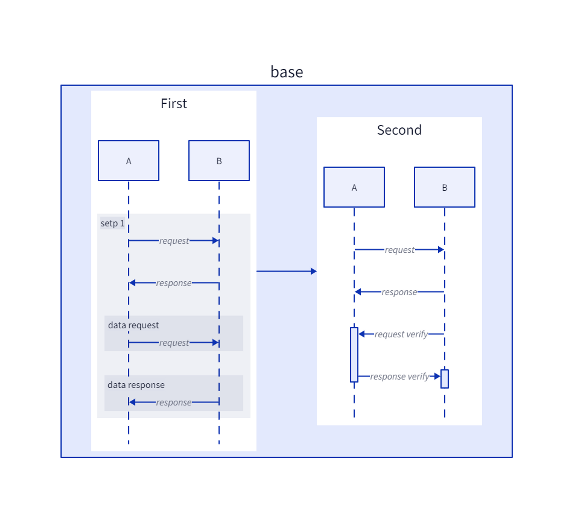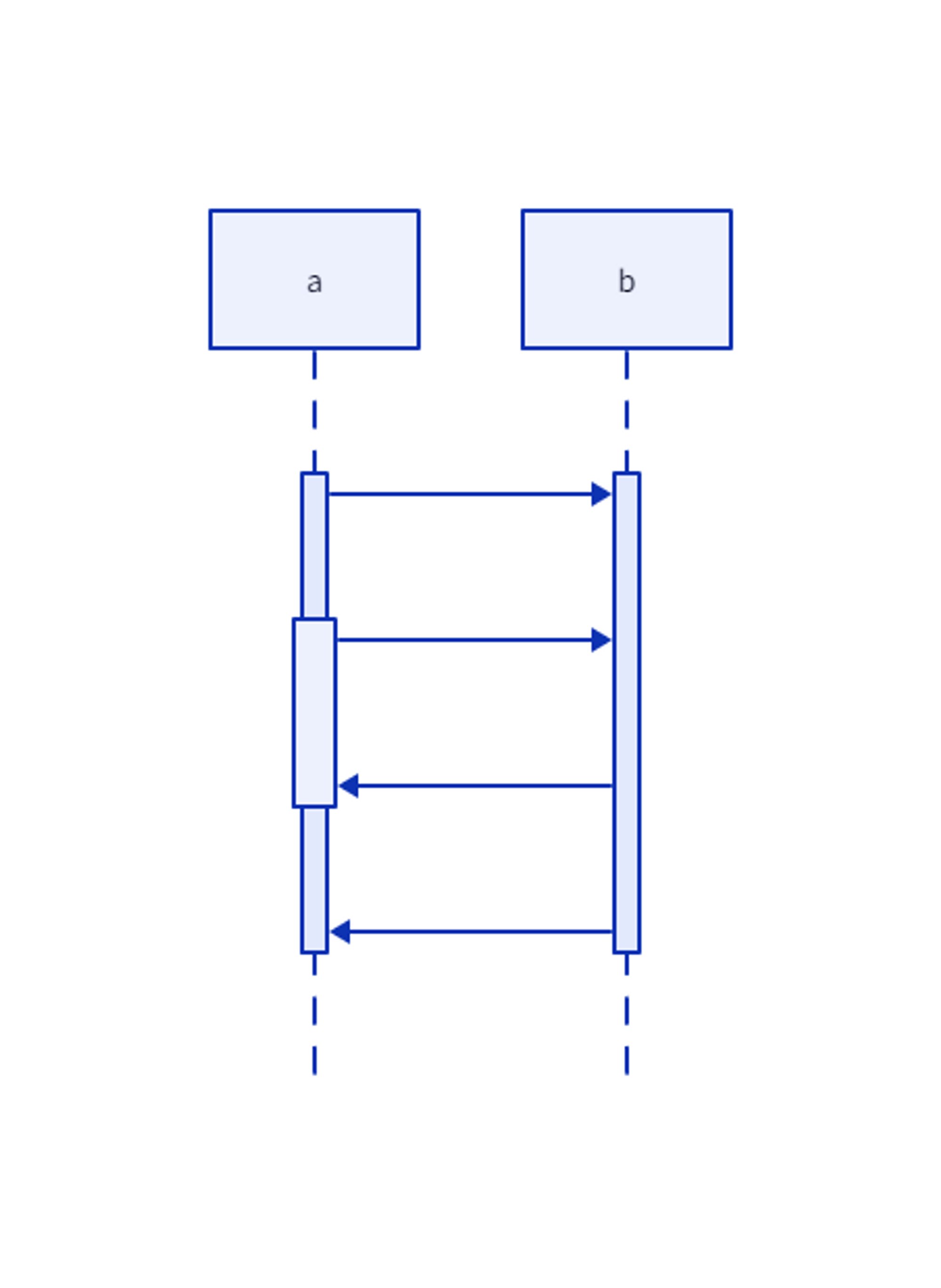 시퀀스 다이어그램의 자식은 전체에서 동일한 범위를 가집니다. (중첩되지 않고 사용됩니다.)